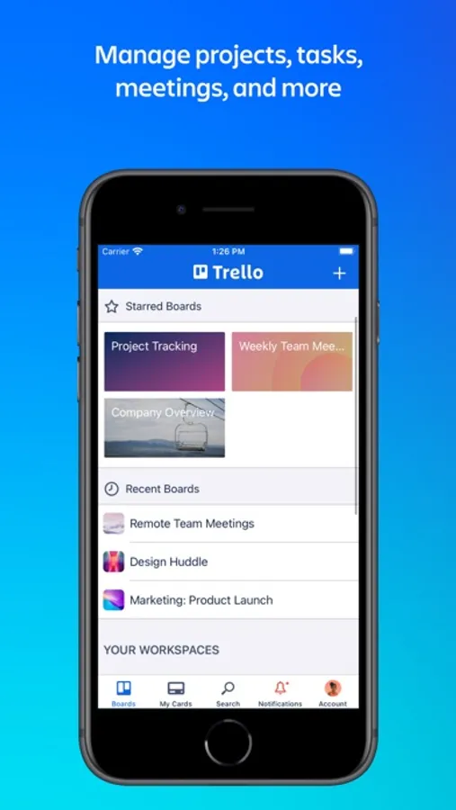 * To stay organized no matter where you are, turn on notifications and stay informed when cards are assigned, updated, and completed.