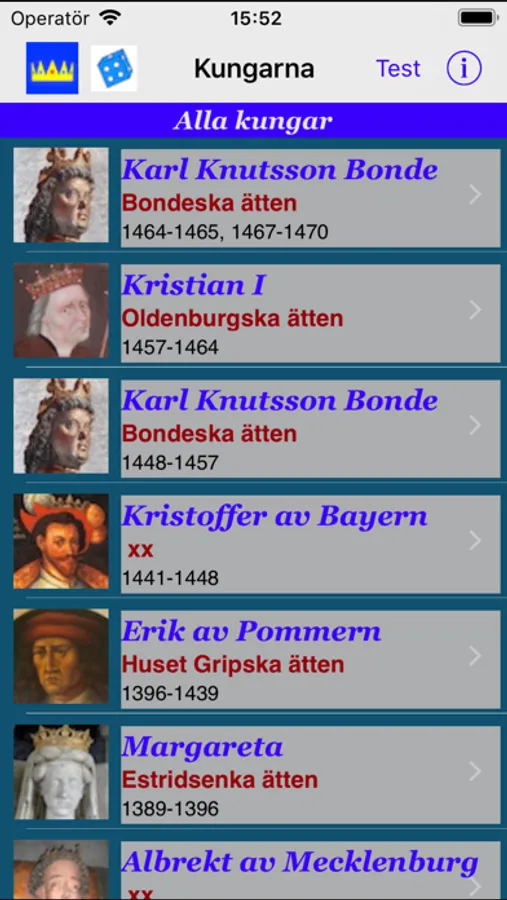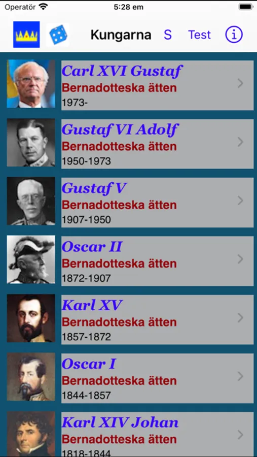 - Snabbskroll genom alla kungar med namn.
