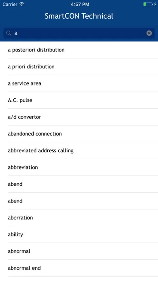 Teknik terimler için İngilizce'den Türkçe'ye sözlük uygulaması. Kullanmak için internet erişiminiz olması gerekmez. 50.000'den fazla teknik terim içermektedir. Aradığınız sözcüğü yazar yazmaz hemen ulaşmanızı sağlar. Böylece size zaman kazandırır. Yalnızca bir kaç harf yazmaya başladığınızda hemen karşınıza bir çok seçenek gelir, yazmak istediğinizi tamamlamaya çalıştıkça size sunulan seçenekler azalıp aramak istediğiniz sonuca en uygun sözcüğü getirir.