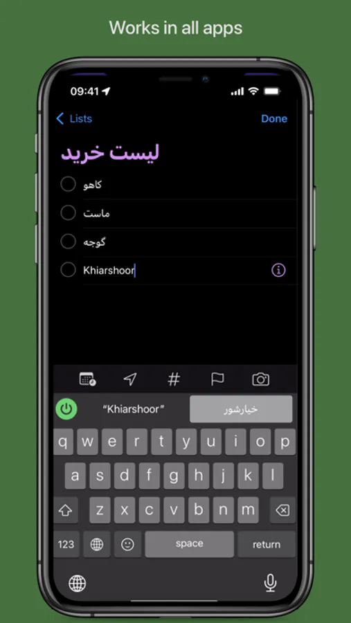 Farsi Nevis keyboard extension makes it extremely easy to write in Farsi.