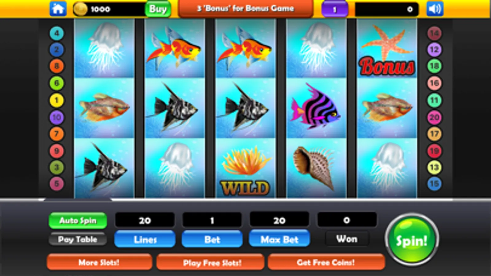 If you love slot machine games and 777 spins you are bound to love this game! Spin your way into a Jackpot today! Spin our slots and get massive payouts on many fish-themed slots machines with specially designed visuals and sound! Try out your luck today! Download and Play Slots!