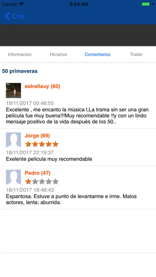 Todas las películas y obras de teatro en cartel: salas, precios, horarios de funciones, trailers, calificación y comentarios de quienes ya la han visto.