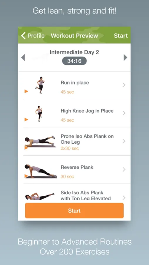 Each day combines cardio, stretching and muscular endurance training into one challenging workout. Every one of the 200+ exercises include video DURING YOUR WORKOUT, so that you can always double-check your form.