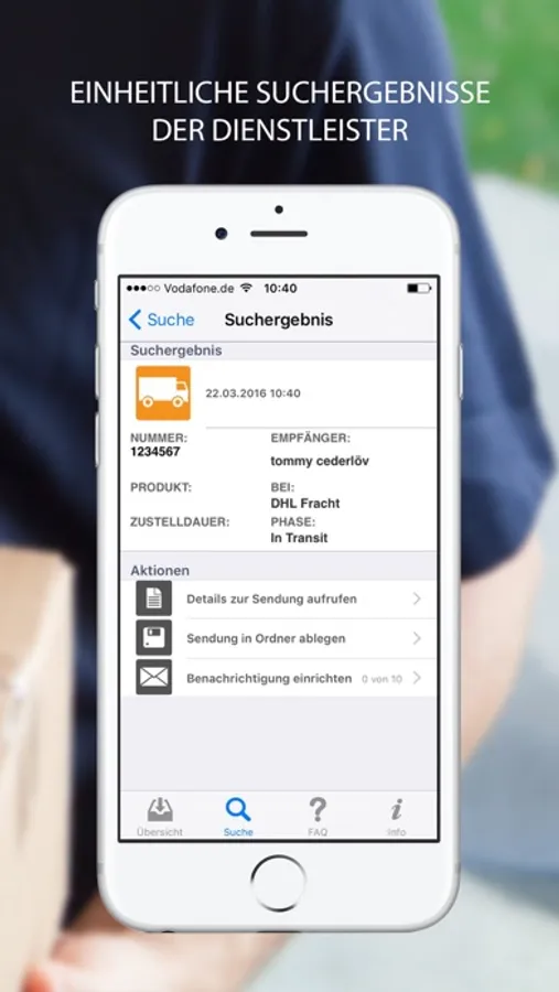 - Einrichtung von aktiven Benachrichtigungen zu einer Sendung (per E-Mail und Push-Benachrichtigung), auch wenn noch keine weiteren Informationen zur Sendung vom KEP-Dienstleister vorliegen