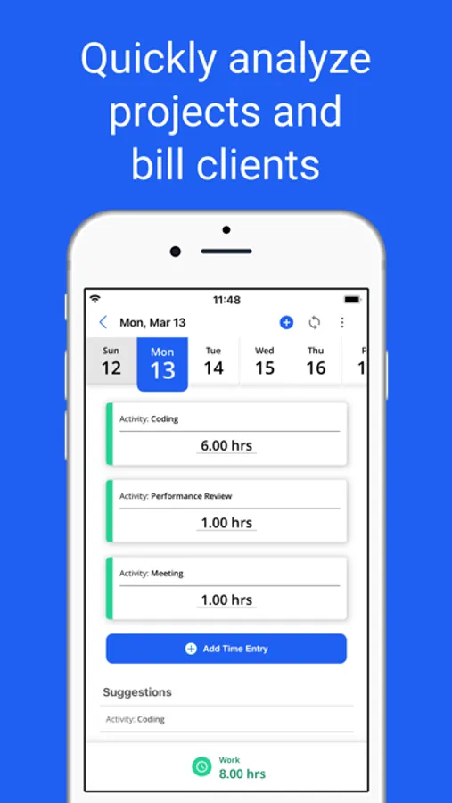 - Enter time against projects, tasks, or activities