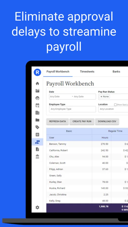 - Approve timesheets, time off, and expenses