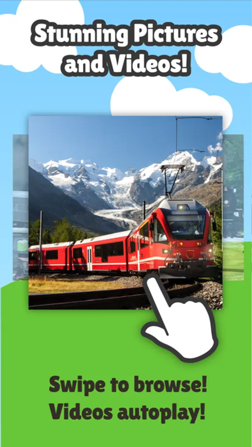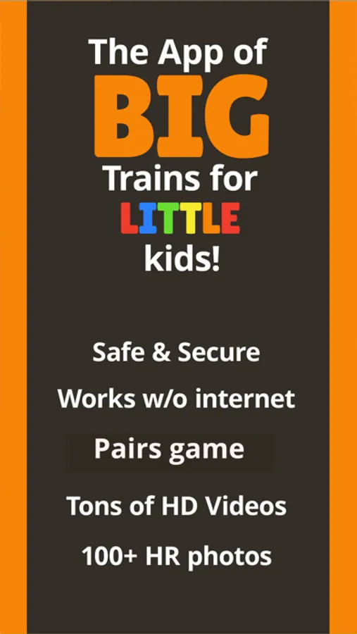 My 2 year old loves this app. I love that it works offline and videos are a variety of trains. Amazing videos but my son usually swipes past the photos.