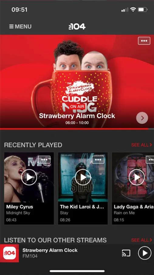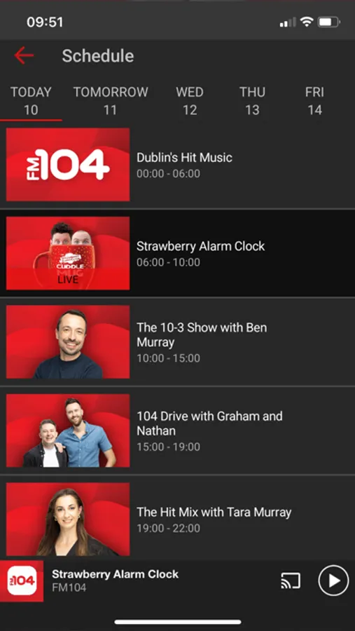 Listen live to FM104, Dublin's Hit Music Station. Listen back to recent shows: 104 Drive with Graham and Nathan and John or The Strawberry Alarm Clock with Jim-Jim and Nobby. You can also check what we're playing, the latest Buzz stories, and The 10-3 Show. Get in touch with the station through email and social media.