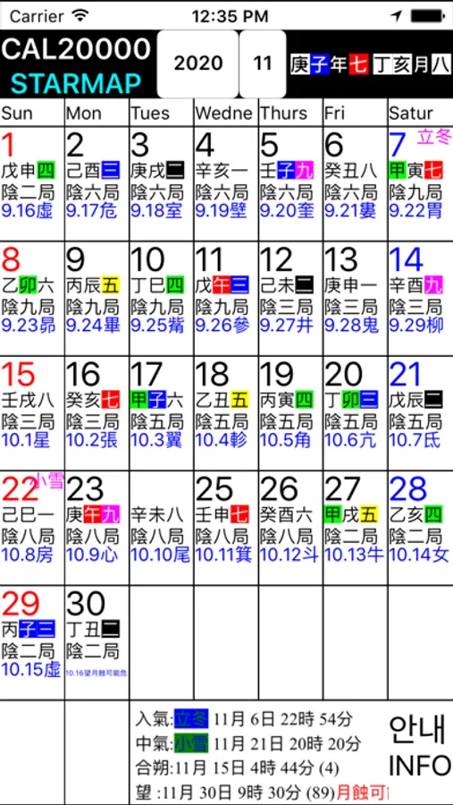 - Kusung(九星) Calendar and KiMoon(奇門) Calendar Information is added. The relation information is here(Korean).