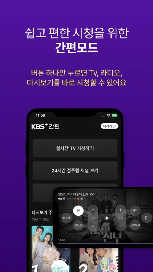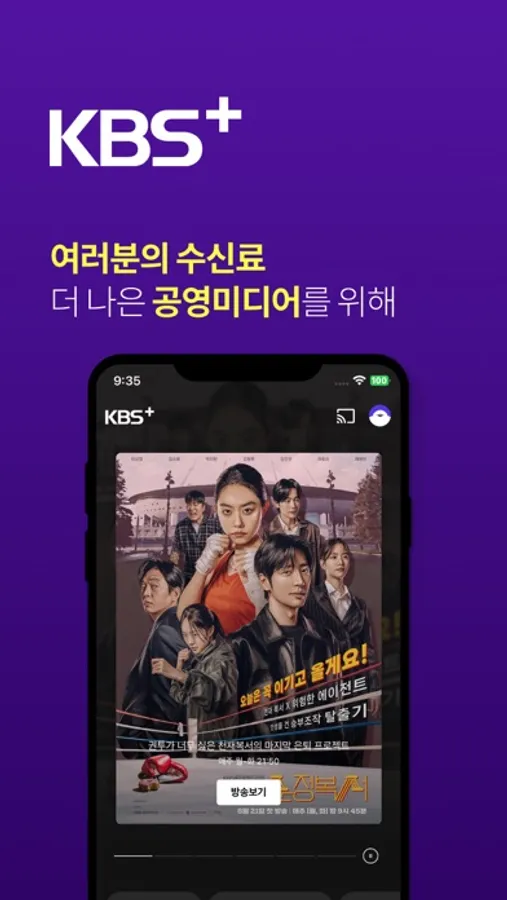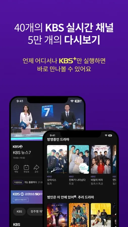 - 언제 어디서나 KBS+만 실행하면 바로 시청 가능합니다.