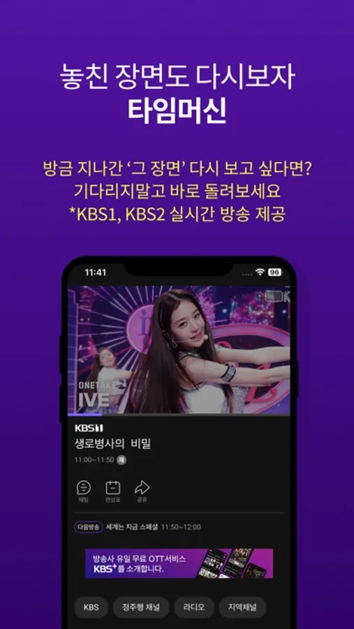 ● 40개의 KBS 실시간 채널 + 5만 개의 다시보기