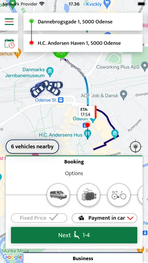 Taxa Fyn serves the following cities and areas: Odense, Svendborg, Fredericia, Kolding, Middelfart, Assens, Nyborg and Faaborg. In addition, we collaborate with Esbjerg Taxi.