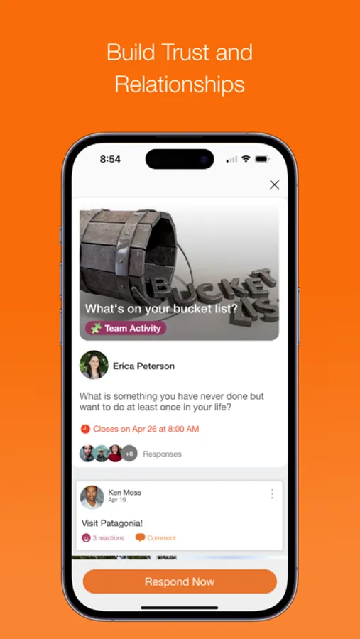 Our platform is an everyday, frontend destination for culture drivers such as team building, recognition, surveys, employee wellbeing, philanthropy, communities of shared interest, and more. And with everything in one place, we identify and suggest the specific actions employees can take – from sharing a photo to recognizing a colleague – to improve business outcomes like retention, satisfaction and performance.