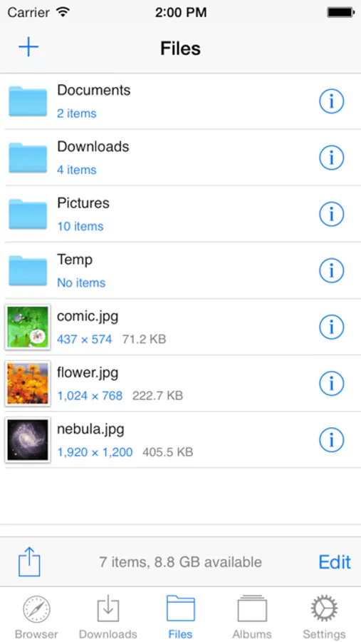 - Document viewer that supports .pdf, .pages, .numbers, .key, .doc, .xls, .ppt and .rtf file formats