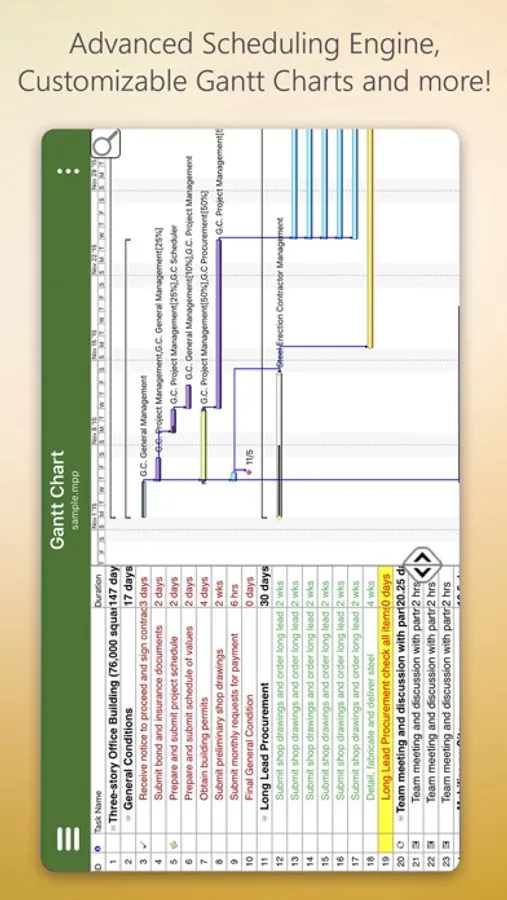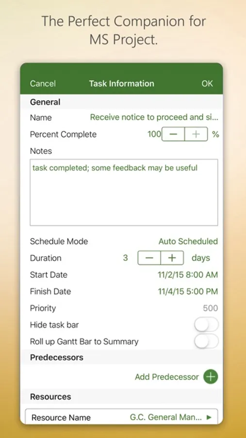 Create new Gantt charts and modify existing project schedules in the same intuitive way as MS Project. Save and Share your plans (MPP files) from any storage or cloud location on any iOS device. Works with, or as an alternative to Microsoft Project.