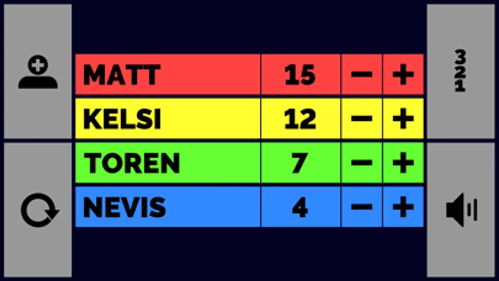 To increase a player's score, simply tap on the plus and minus buttons next to their score. If you hold the button it'll count up a lot quicker.