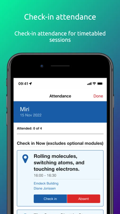 • Check-in at teaching activities to record attendance