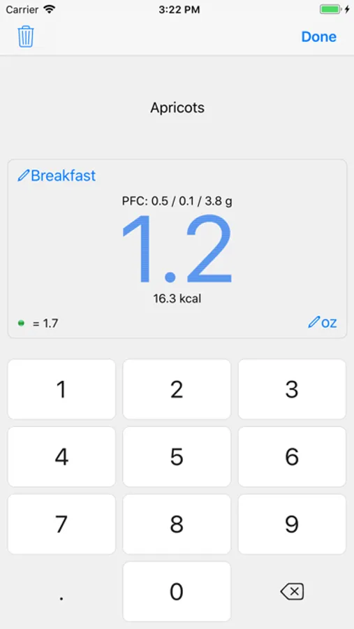 6. Choice of servings (grams, ounces, glasses, spoons).
