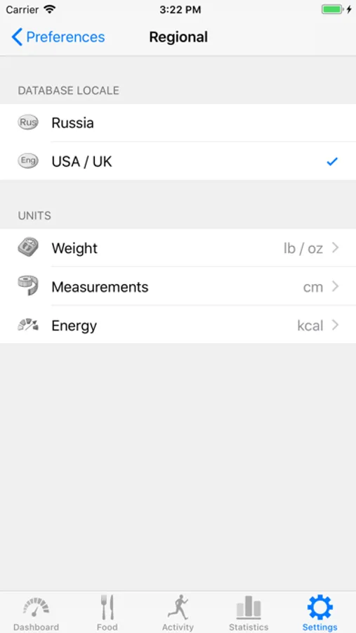 10. Support of both metric (kg/g, cm) and US (lb/oz, in) measurement systems.