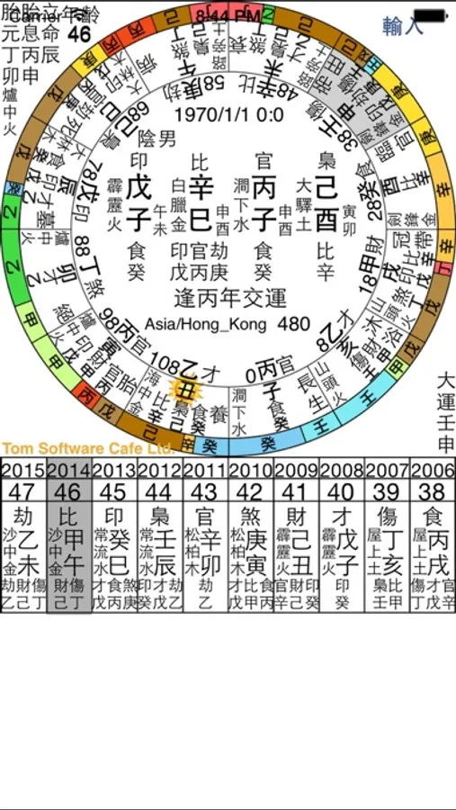 八字免費版提供簡單八字排盤功能,可在輸入出生年月日時後排出四柱及大運,按圓盤上大運之天干,可變換流十年,以看氣運之興替。