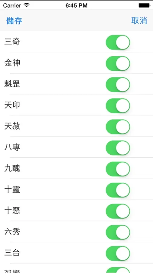 -神煞設定。(三奇,金神,魁罡,天印,天赦,八專,九醜,十靈,十惡,六秀,三台,孤鸞,貴人,文昌,學堂,金輿,祿神,沐浴,紅豔,羊刃,飛刃,流霞,天官,截空;金匱,紅鸞,天喜,龍德,福德,喪門,五鬼,破碎,大耗,白虎,天狗,桃花,血刃,寡宿,孤辰,伏吟,劫煞,將星,驛馬,華蓋,桃花,血刃,隔角,亡神,天德,月德,天德合,月德合,月破,血刃,天醫,月馬)