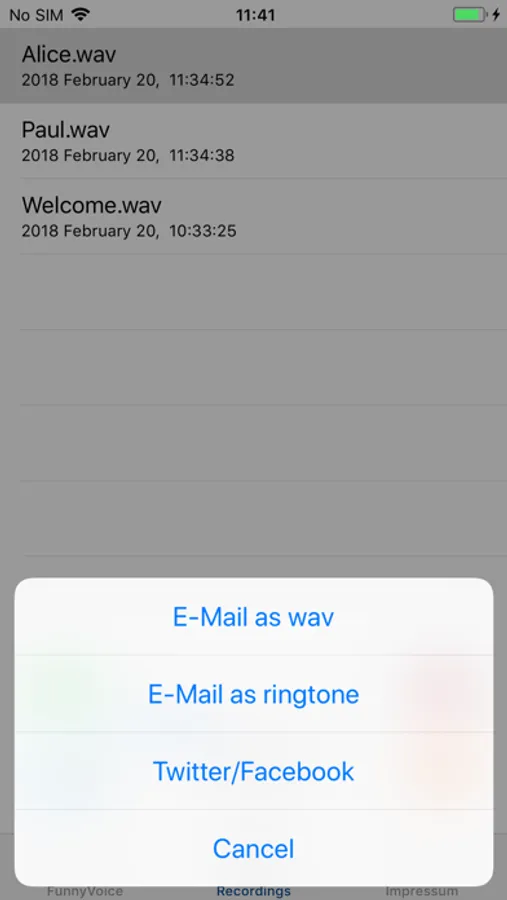 - Post a message to Facebook or Twitter from the FunnyVoice app.