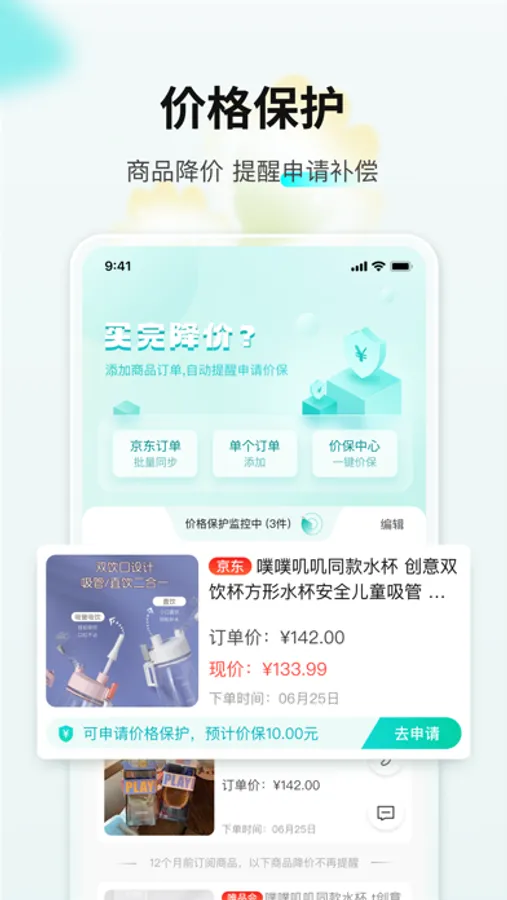 【价格保护】已购买的商品添加价保,商品降价自动提醒申请补偿