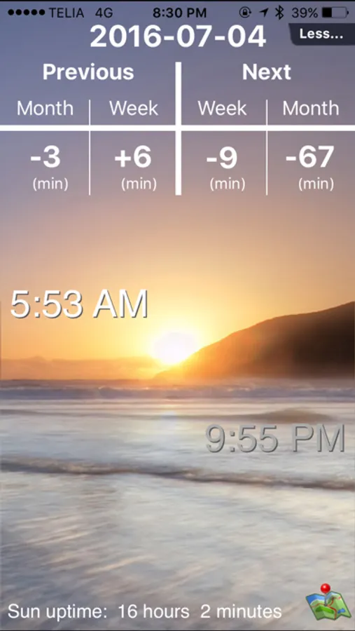 Need to know when the sun goes up and down where you are right now? This application tells you that. You can also look into the future when the sun goes up and down on a certain date and at a particular location.