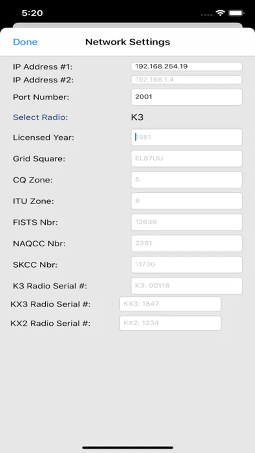 K3iNetwork provides remote control of the Elecraft K3, K3S, KX3 or KX2 radios via a WiFi network and PC or Mac connected to the radio serial port. The user can control many functions of the K3, K3S, KX3 or KX2 radio using their iPhone. CW, RTTY and PSK31 QSOs are possible. The user can watch text from the radio VFO B window stream to their iPhone in the Terminal window, and send CW, RTTY, or PSK, as appropriate, in response.