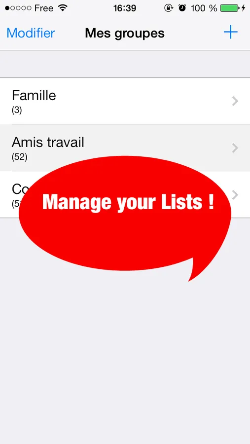 CREATE YOUR OWN CONTACT GROUPS (friends, family, work ...)