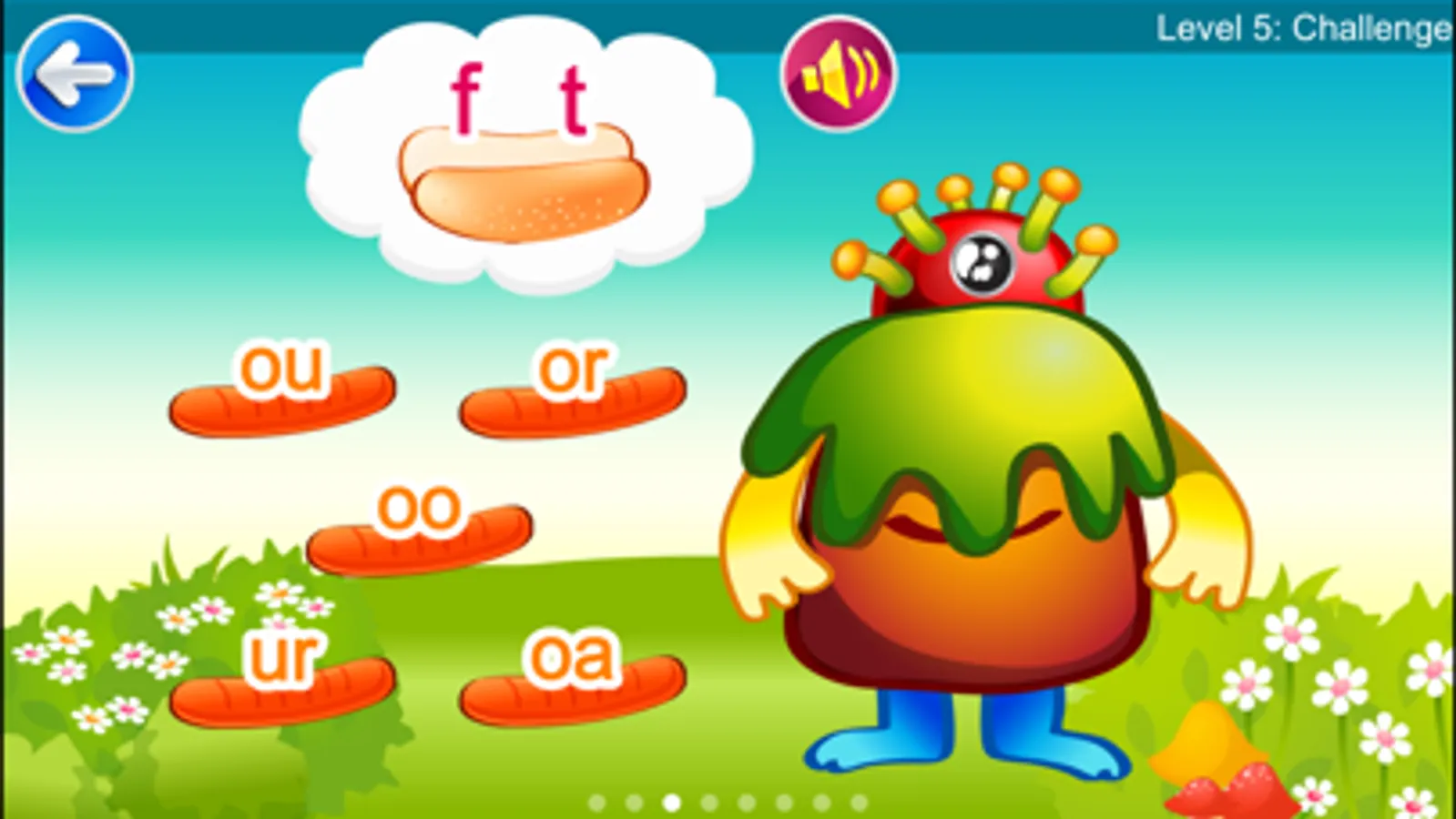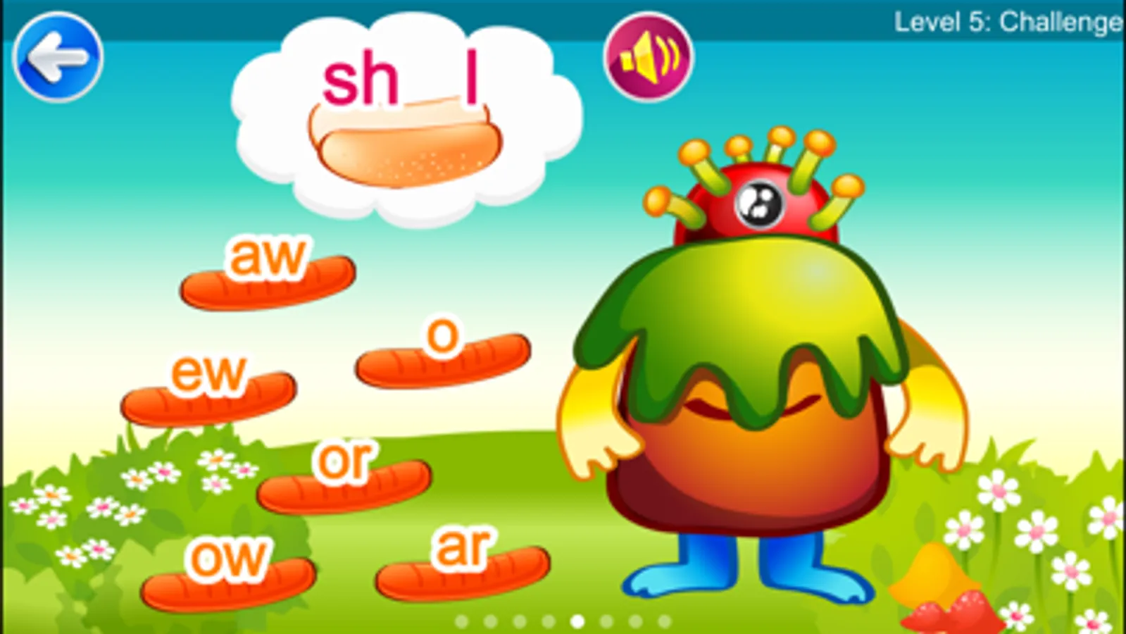 This is a vowel game to improve your child's reading and writing skills. Learning vowels helps your child to distinguish distinct words such as fan fin fine fun, and recognize those words easily. This app is useful not only for reading but spelling and writing also. It uses phonics to help your child learn new words by putting sounds together to make words (like /b/ /a/ /t/ bat). So your child will be able to read and write words correctly without memorizing. All of the app’s 1,110 words can be sounded out using common phonics rules grouped by Short Vowel, Long Vowel, Bossy R's and other Vowel Team words. In this game, your child will find the missing vowel in the word. Each correct word will feed Howie a hotdog. He is very hungry, so try to find as many correct vowels as you can!