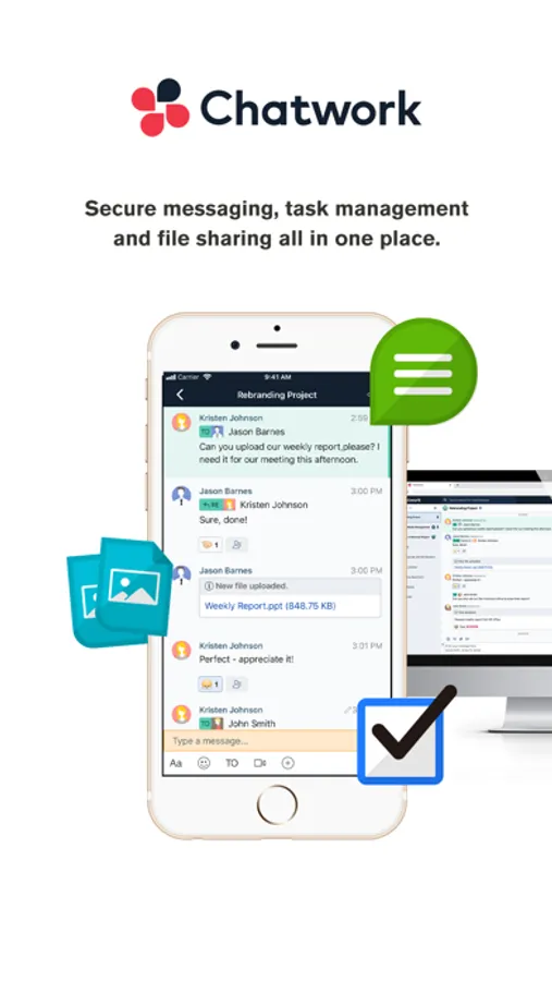 Chatwork is a free business chat tool that streamlines email, phone calls, meetings, visits, and other internal communication.