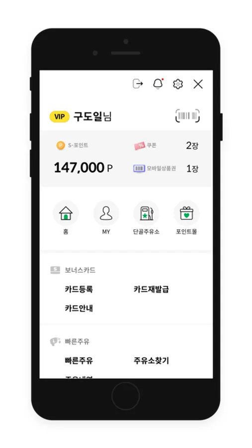 보너스카드가 없어도 MY S-OIL 앱을 흔들기만(Shake it) 하면 주유소/충전소에서 보너스카드 바코드로