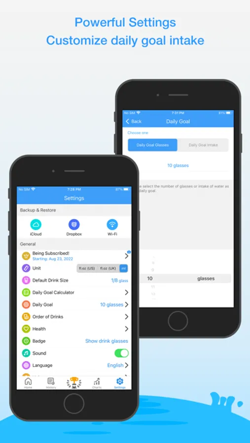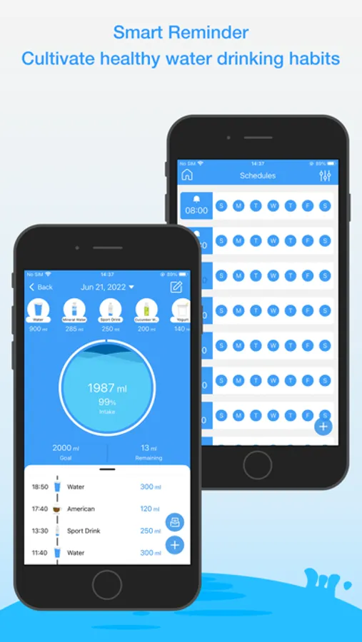⁃ Plan drinking schedule, customize drinking water reminders and notification text.