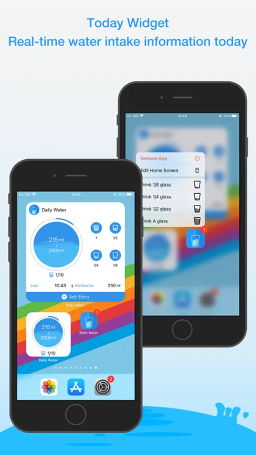 ⁃ Show amount of glasses of water you have drunk one day on the icon.