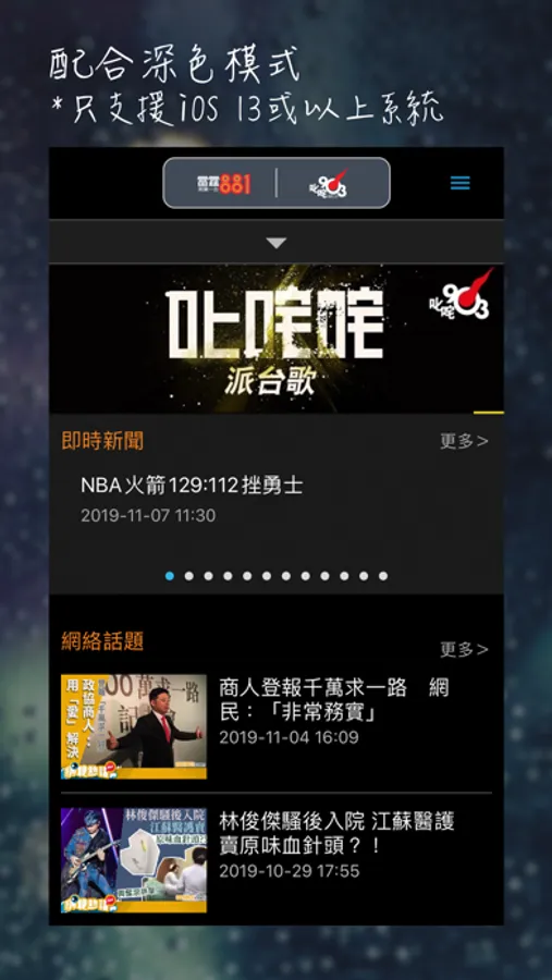 “Hong Kong Toolbar” is a multi-media application developed by Commercial Radio (CR). This application allows users to enjoy live programs and instant news provided by CR, including: