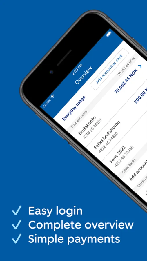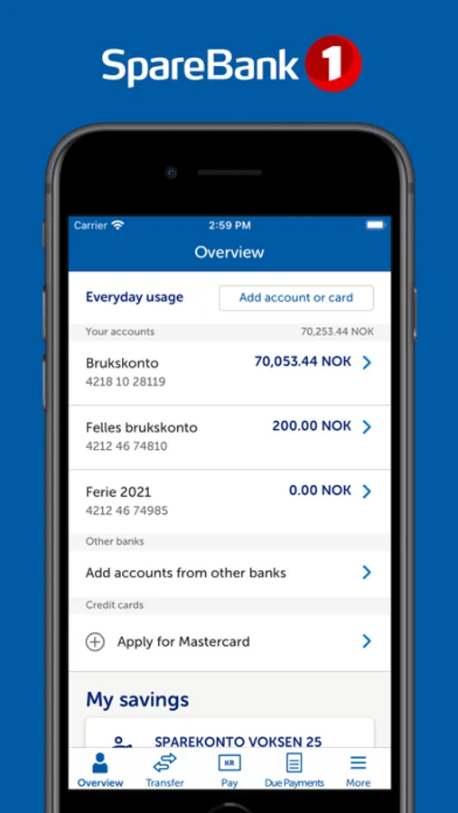 If you are not a customer with SpareBank 1, you can easily become a customer in the app.