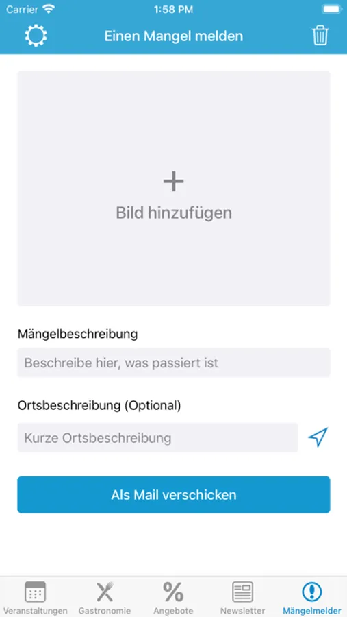 Sie haben in der Stadt einen Mangel entdeckt, von dem die Stadtverwaltung wissen sollte? Über den integrierten Vorfallsmelder können Sie Ihre Beobachtungen schnell und unkompliziert per Mail mitteilen.