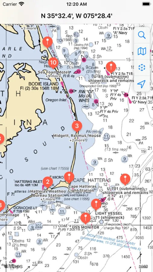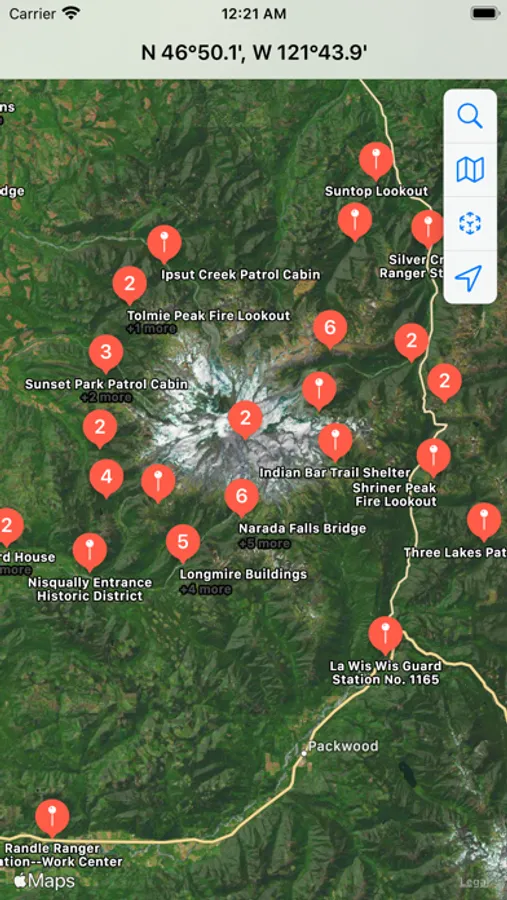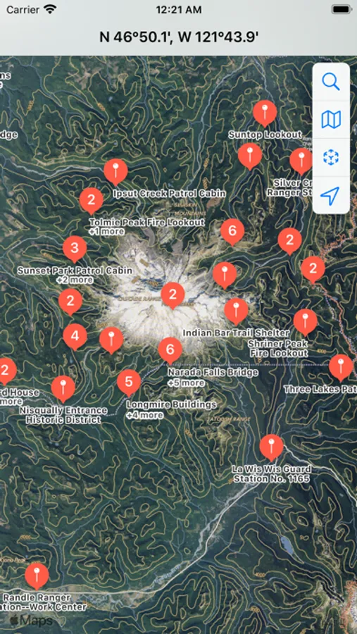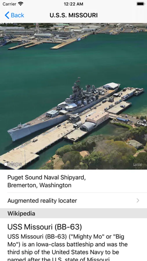 Find the sites near you or along your next road trip. Don't miss a detour. Map gives you your choice of Apple maps, USGS topographic maps, or NOAA nautical charts. Wikipedia text excerpts and links are included. Augmented Reality view identifies what's nearby, and shows the way to spots far afield.