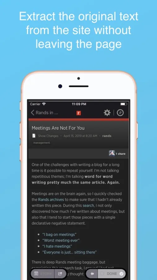 * Send to Facebook/Twitter/Instapaper/Pocket/Evernote/email/etc