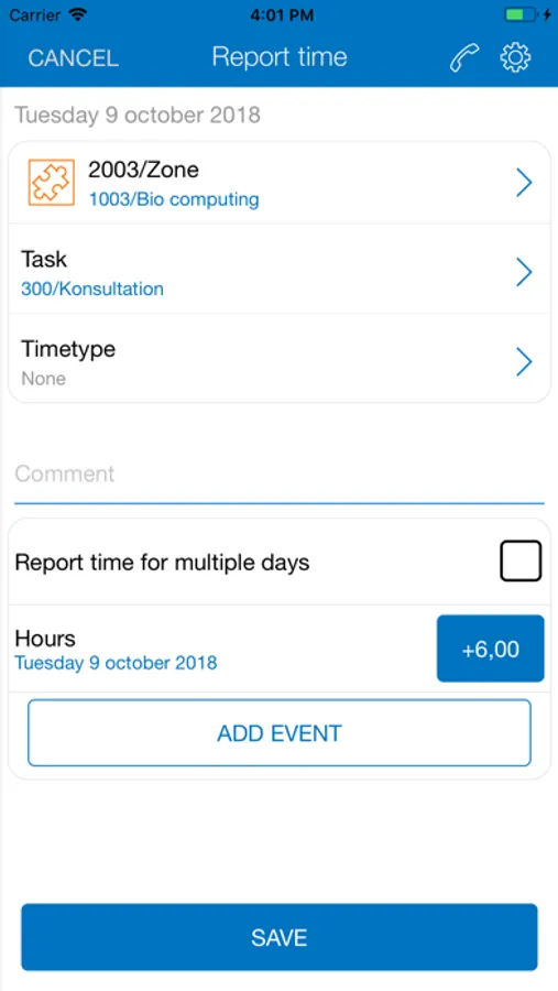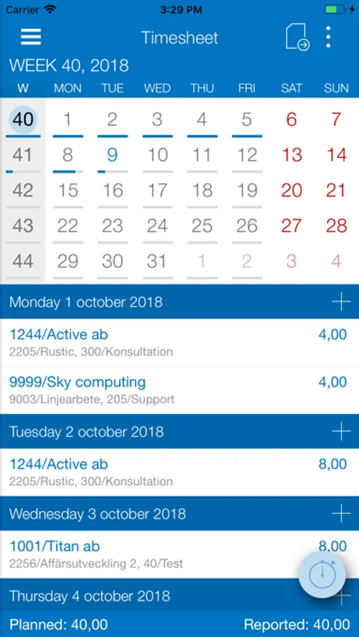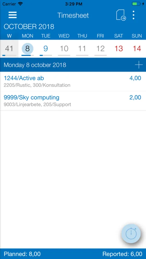 Copernicus Mobile Timesheet makes it possible to report time when you are traveling, when you are on the road between client meetings, when you sit and work with the customer or when you're on your way home.