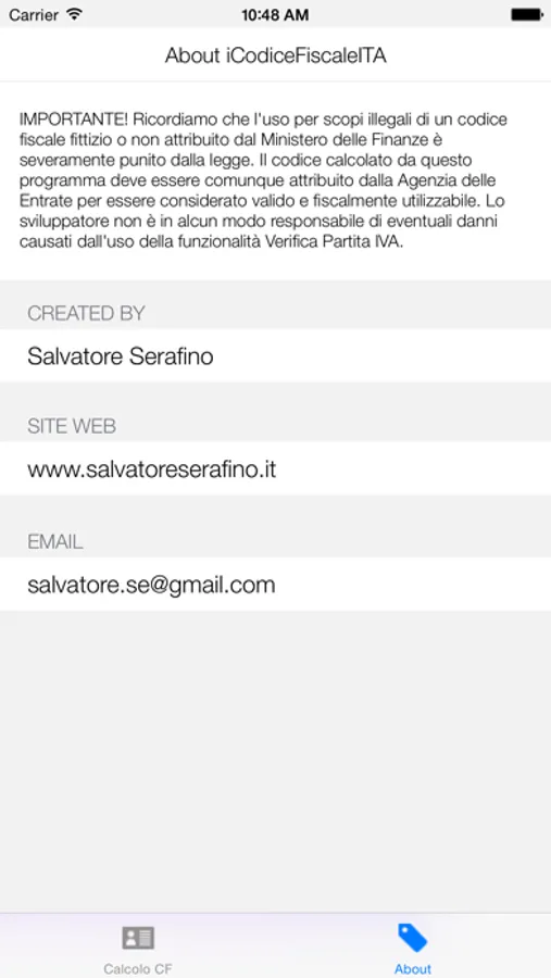 Il calcolo del codice fiscale è completamente autonomo quindi non prevede la connessione ad internet.