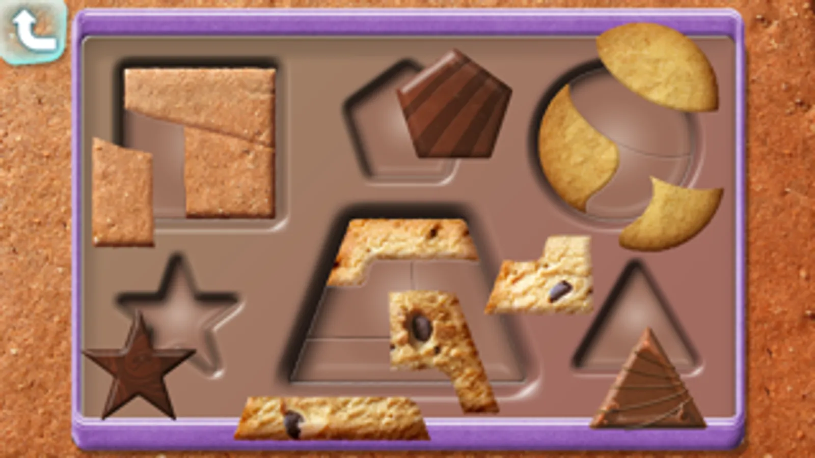 Let's put pieces of chocolate and cookies into a candy box. This app will help your kids become familiar with basic shapes and their names.