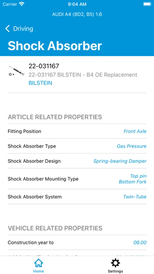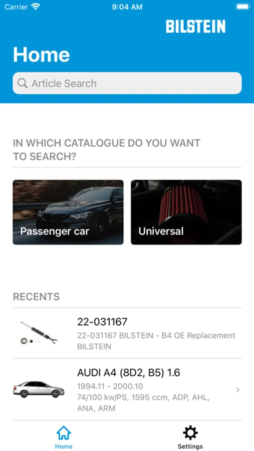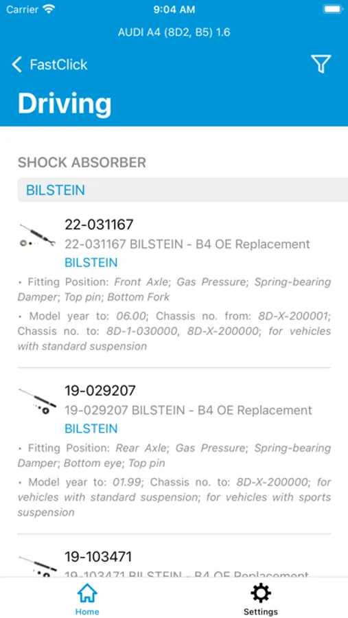 The app takes you directly to the article you want. Just select a vehicle manufacturer, model series, vehicle type and component, and you will immediately be shown the corresponding results from the BILSTEIN range.