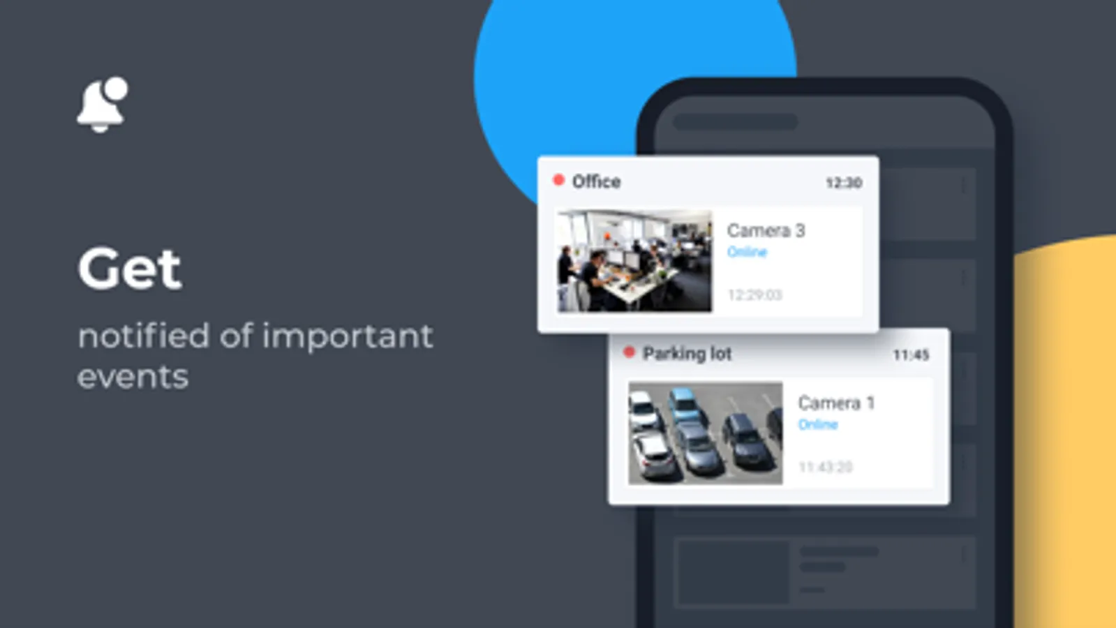 Ivideon easily supports both single and multiple locations. It tracks what matters most to you, no matter where you are. It keeps you updated on important events in real time and stores those events in the cloud for easy access.