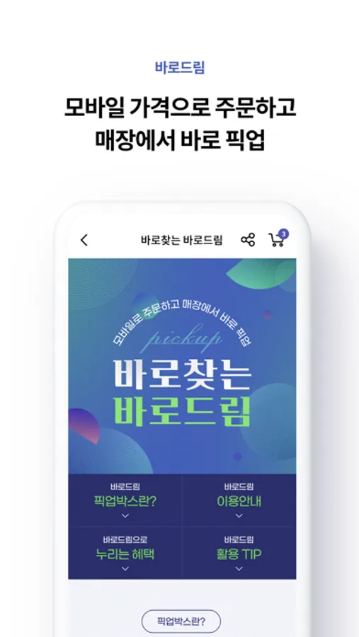 - 모바일 가격으로 주문하고 매장에서 바로 픽업! 바로드림을 이용해 보세요.