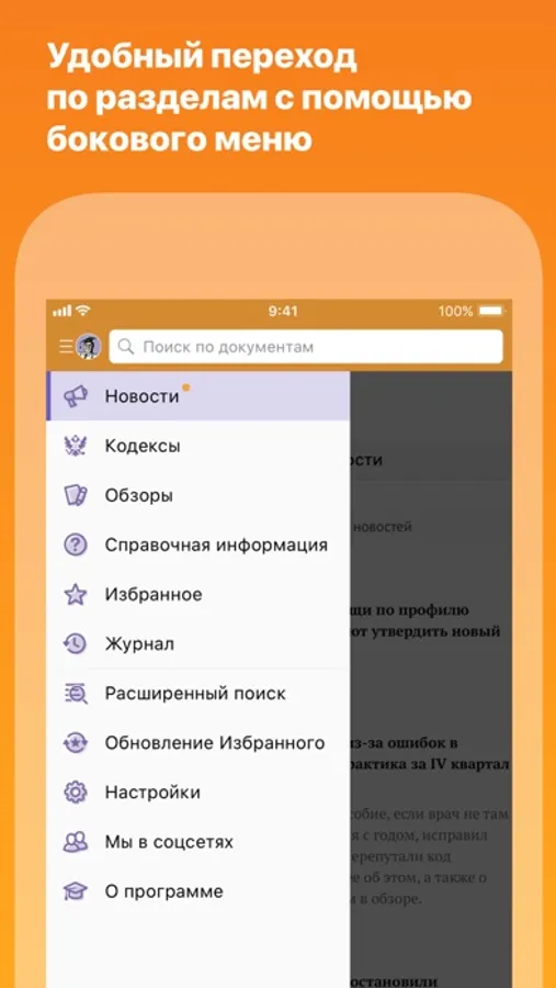 В приложении в любое время доступна наиболее востребованная правовая информация: Конституция РФ, кодексы РФ, основные правовые акты федерального законодательства, обзоры новых документов и справочные материалы.