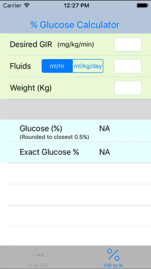 This update also includes reverse calculator where you can enter desired GIR, weight and fluid intake. App then calculates necessary % glucose concentration,