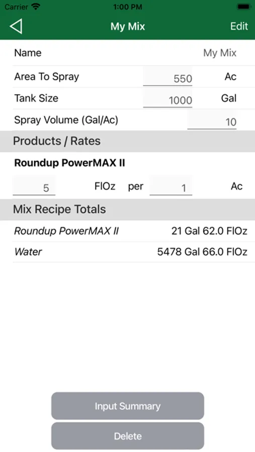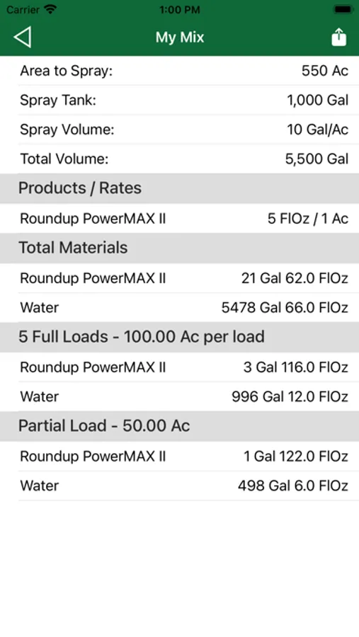 This agriculture application is provided free for any farmer to use on their mobile device to quickly and easily generate a tank mix. Just enter your acreage, tank size, and carrier volume. Next, select your chemicals from our list or add your own. Tank Mix Calculator will then provide you with the number of loads required to spray your acreage, along with full and partial load mixes of the chemicals you selected.