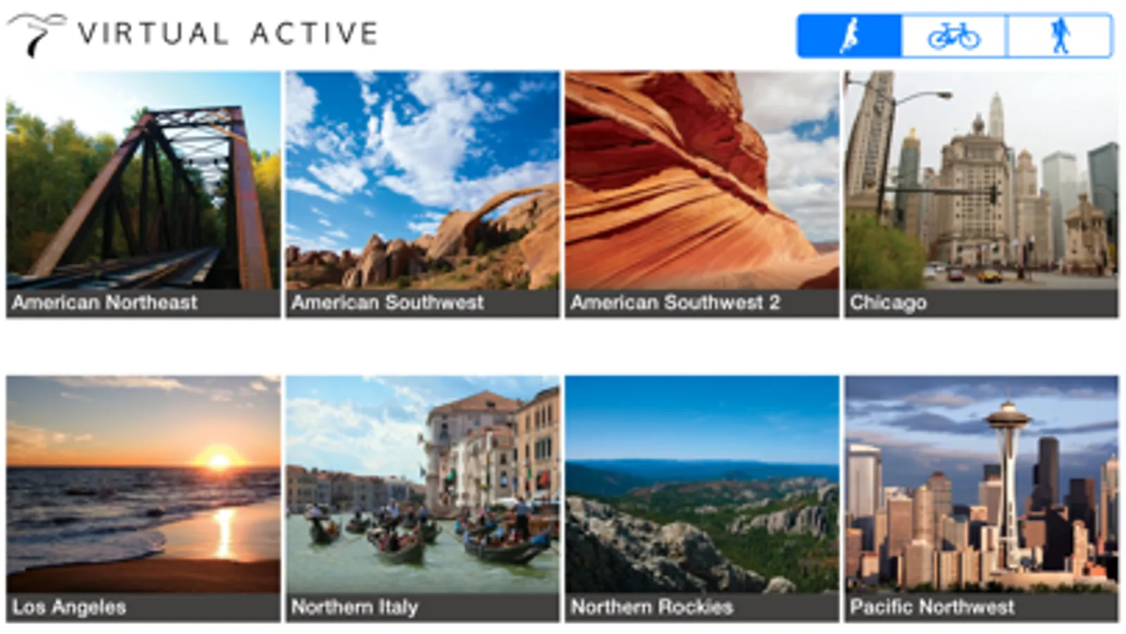 Shot in beautiful locations around the world, Virtual Active transports you to iconic trails and landscapes, turning indoor exercise into an adventure.
